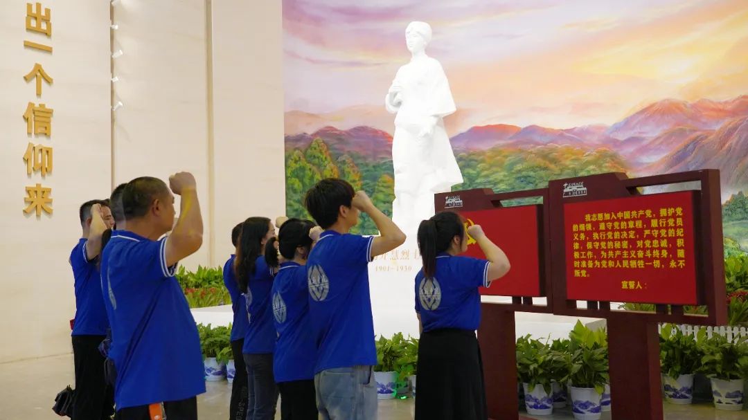為了更深入地了解楊開慧烈士的英勇革命事跡,大家緊接著走進了楊開慧紀(jì)念館,在楊開慧烈士的雕像前,全體黨員面向黨旗,肅然站立,高舉右拳,重溫入黨誓詞,再次用錚錚誓言表達(dá)入黨初心。隨后,通過紀(jì)念館內(nèi)豐富詳實的歷史資料,大家全面地追憶了楊開慧烈士的生平事跡。伴隨著講解員的深情講述,大家仿佛穿越時空般,親身感受到楊開慧烈士29年的壯麗人生,無私無畏、崇高的革命情懷。